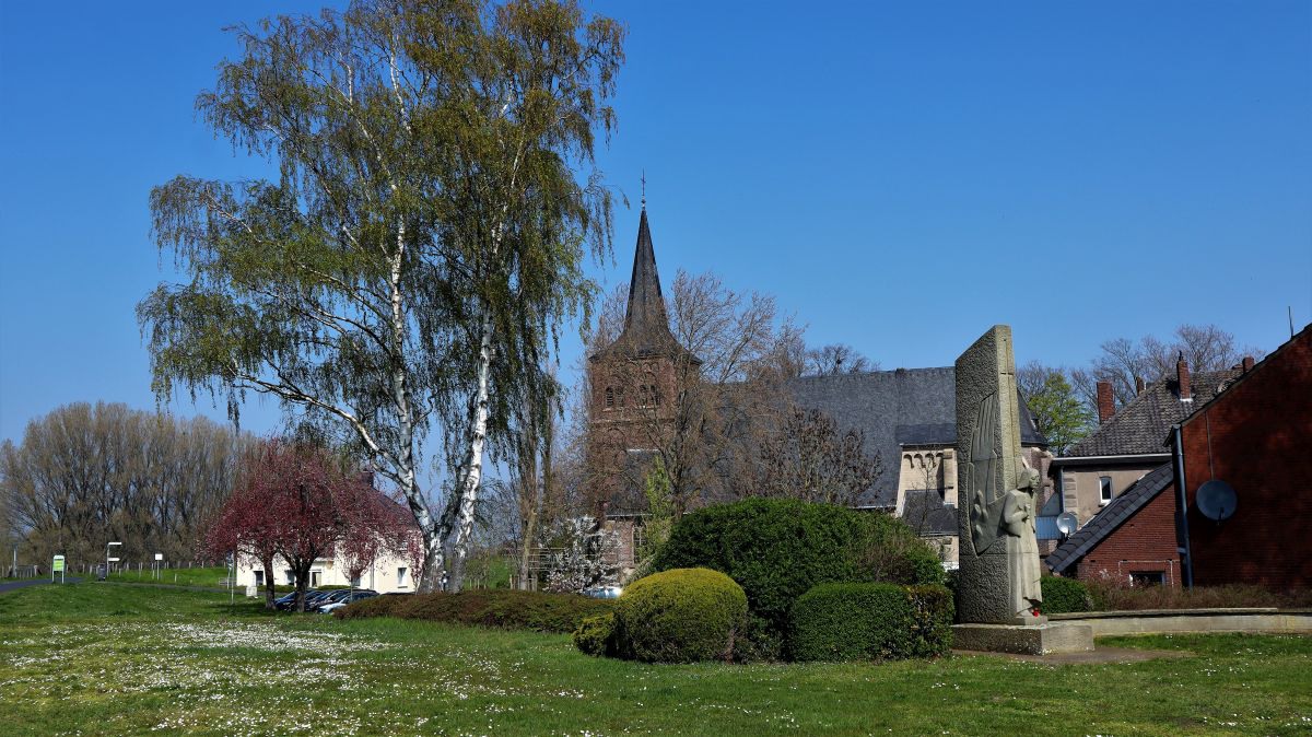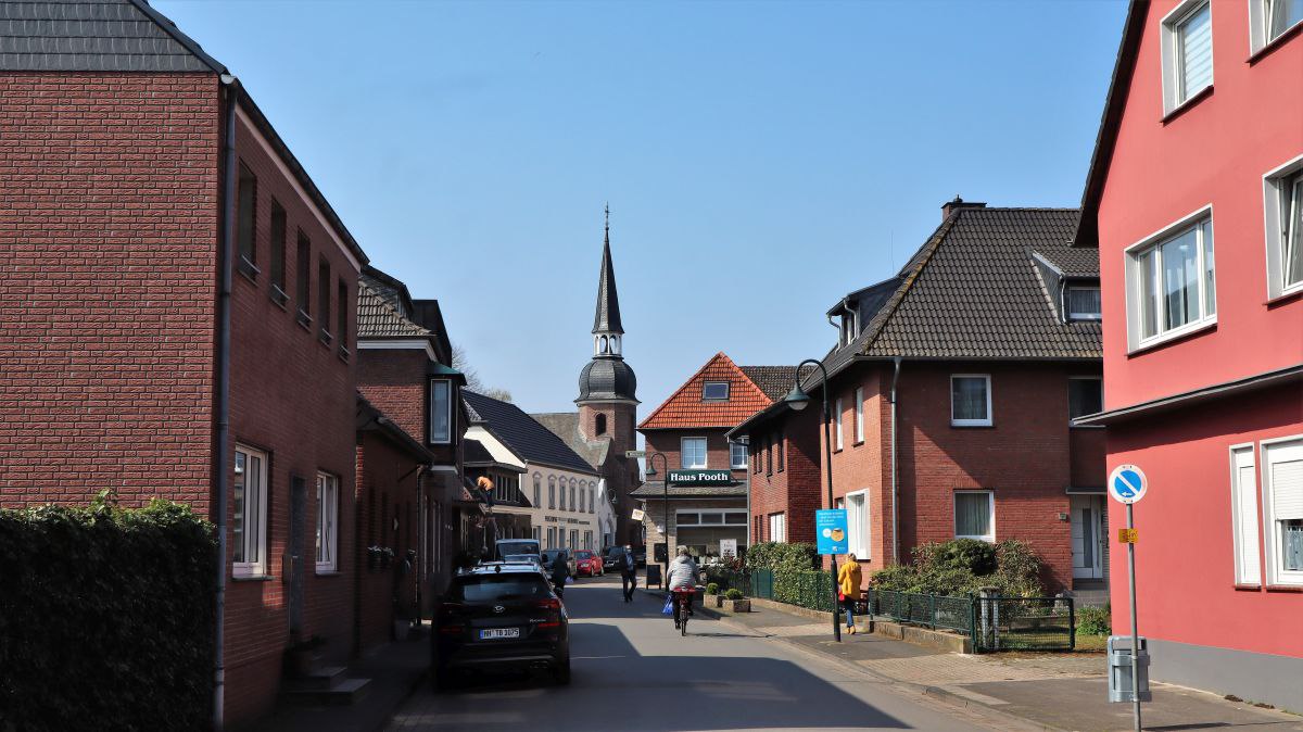 Startpunkt meiner Wanderung war der Parkplatz Bislicher Ortsmitte in der Nähe des Deichdorfmuseums. Von dort geht es vorbei am Dorfdeichmuseum über die Dorfstraße in Richtung Pfarrkirche St. Johannes.