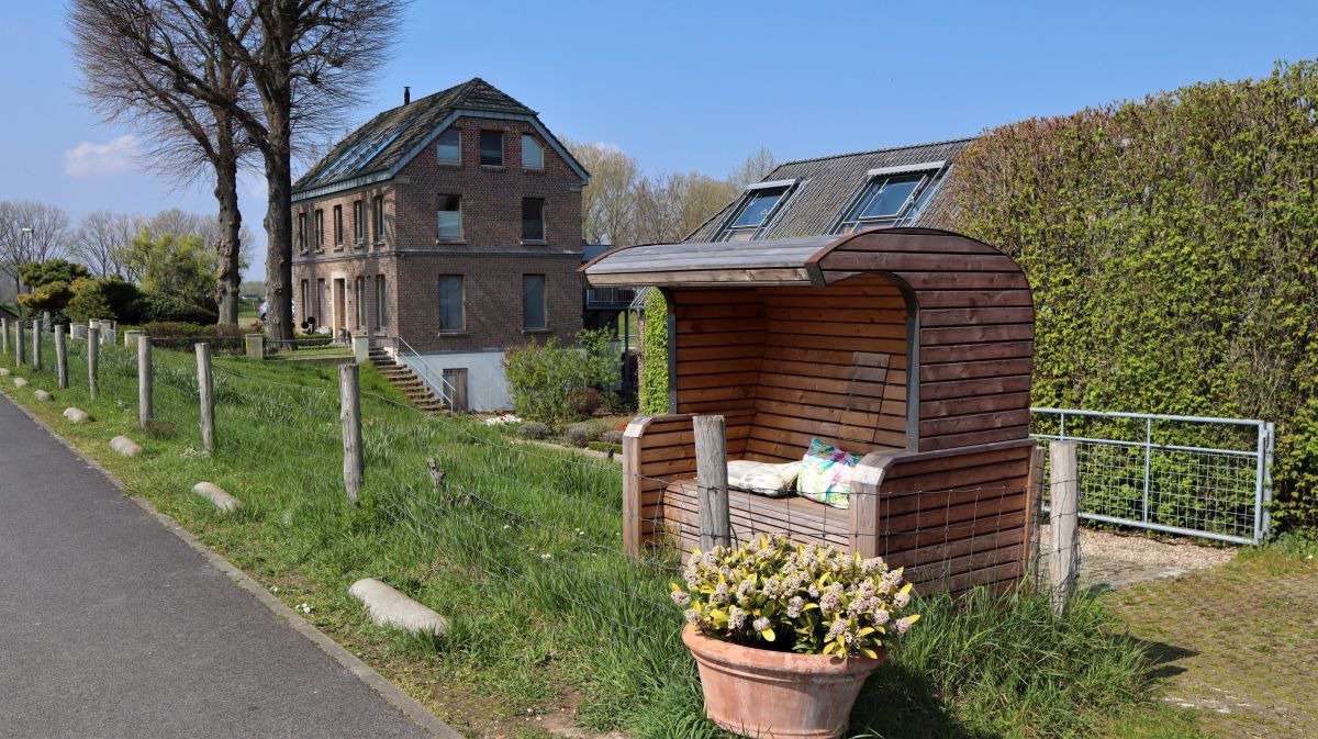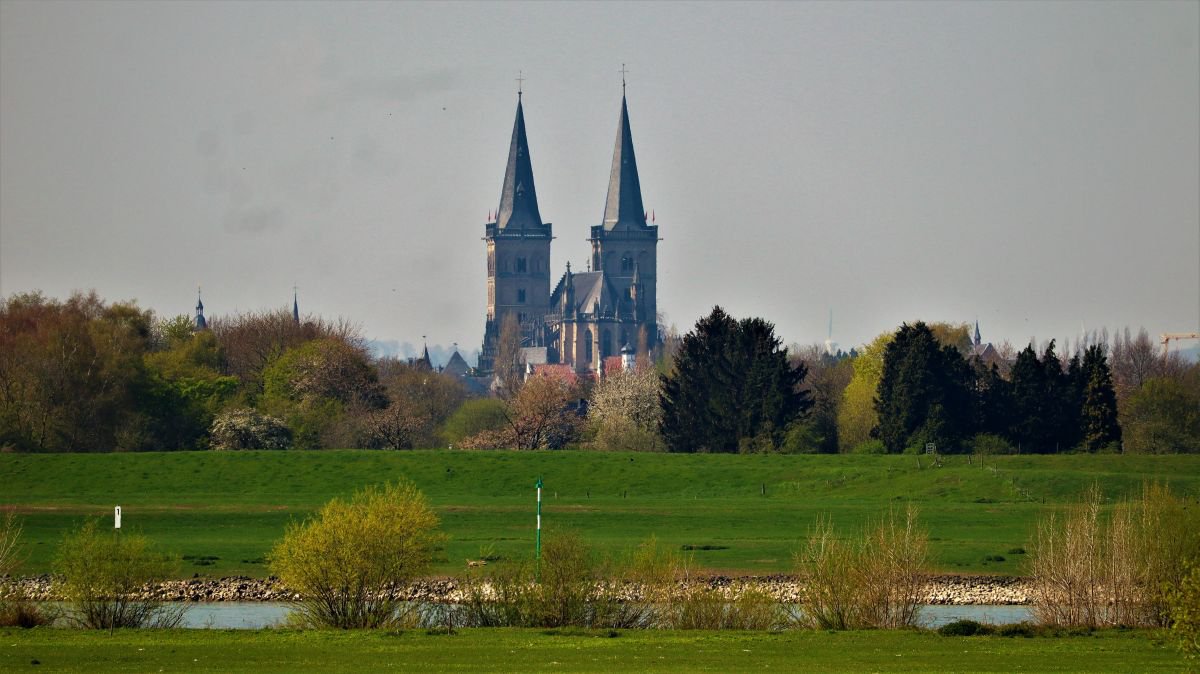 Vom Deich genießen wir den Blick über den Rhein und in der Ferne auf den Xantener Dom. Hier laden Bänke immer wieder zum Verweilen ein. In Bislich geht es vorbei an der katholischen und evangelischen Kirche wieder über die Dorfstraße zurück zur Ortsmitte.