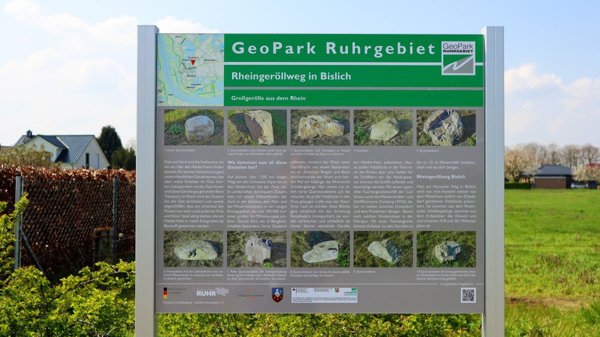 Der Weg führt uns vorbei an einigen Teichen über den Harsumer Weg wieder nach Bislich. In Bislich überqueren wir die Mühlenfeldstraße und wandern vorbei am Rheingeröllweg Bislich in Richtung Ellersee (Baggersee mit 7 markanten Silos).