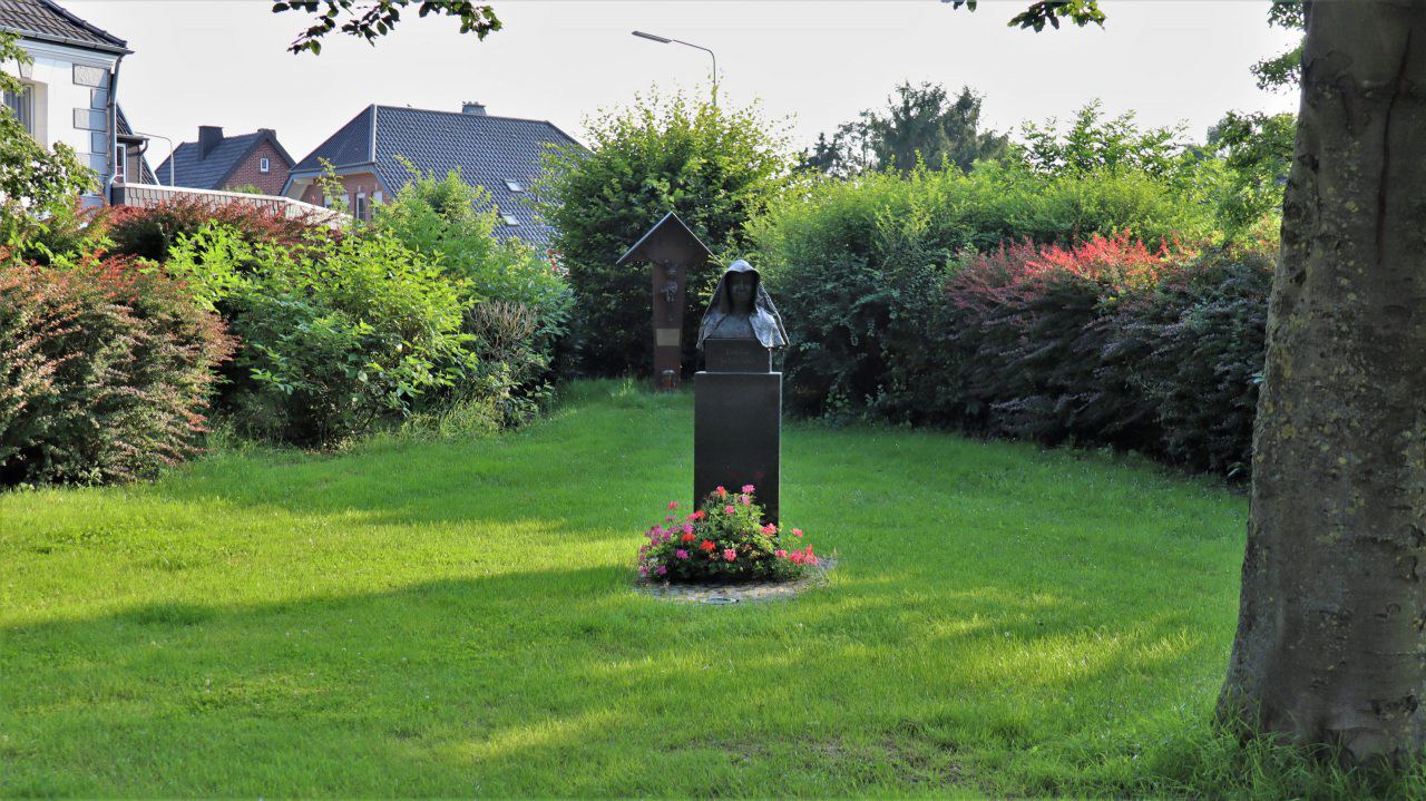 Von dort machen wir einen kurzen Abstecher zum Haarener-Friedhof, der sich durch seine weißen Grabkreuze auszeichnet und in unserer Umgebung wohl einmalig ist. Von Außen macht er durch seine einheitlichen weißen Grabkreuze den Eindruck eines Soldatenfriedhofs. Die einheitliche Gestaltung der Grabkreuze hat jedoch zum Ziel einen Wettbewerb „wer hat das monumentalste Grab“ zu verhindern. Im Tod sind alle gleich.