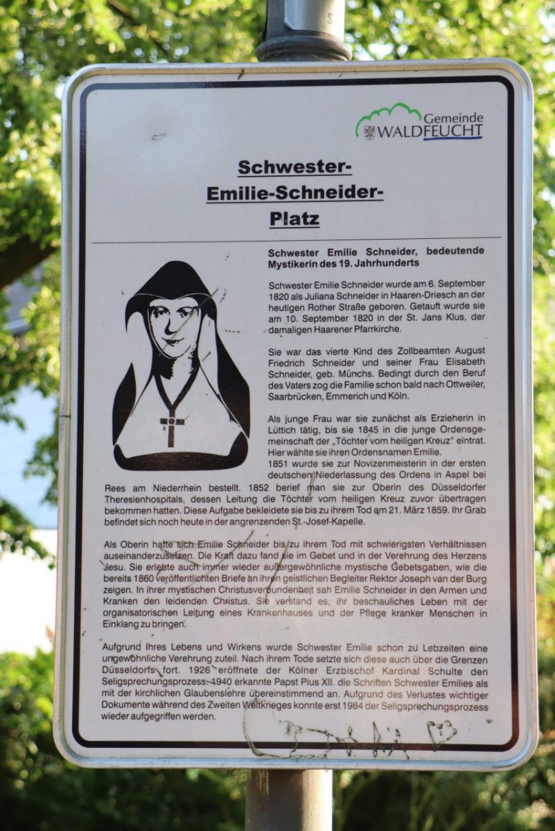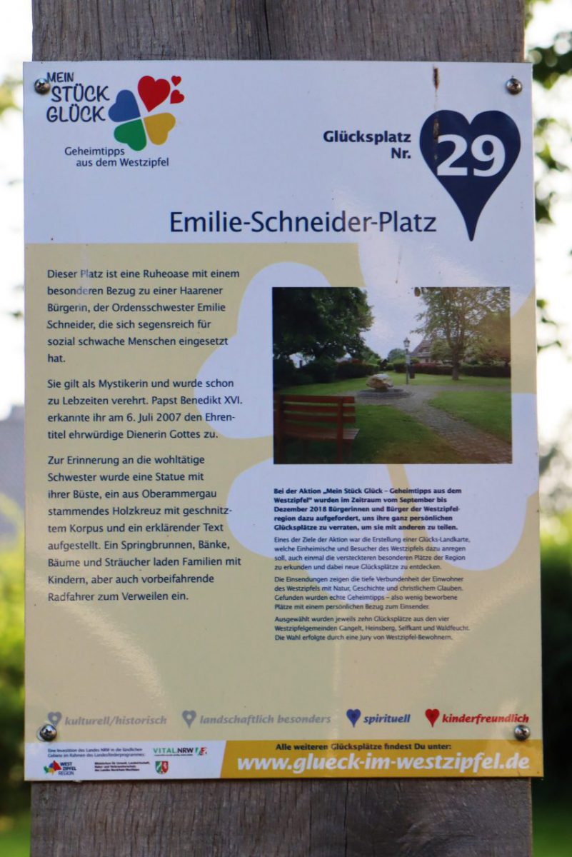 Vom Cafe Klus wandern wir zurück in den Ortskern zum Emilie-Schneider-Platz dem 3. Glücksplatz auf unserer Tour.