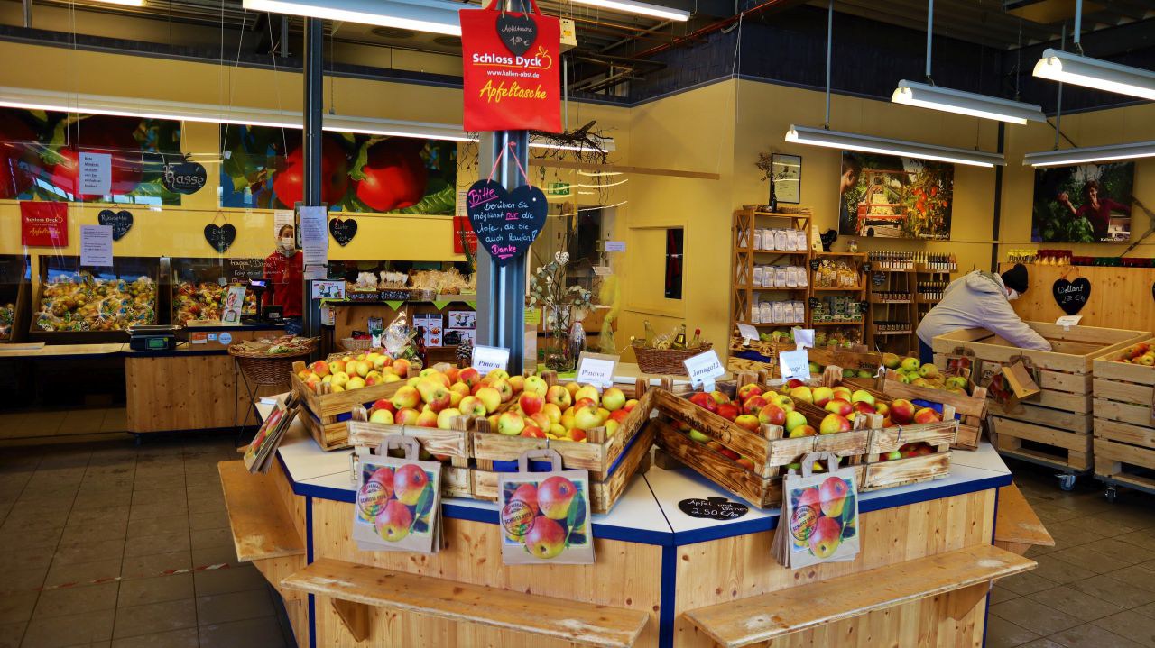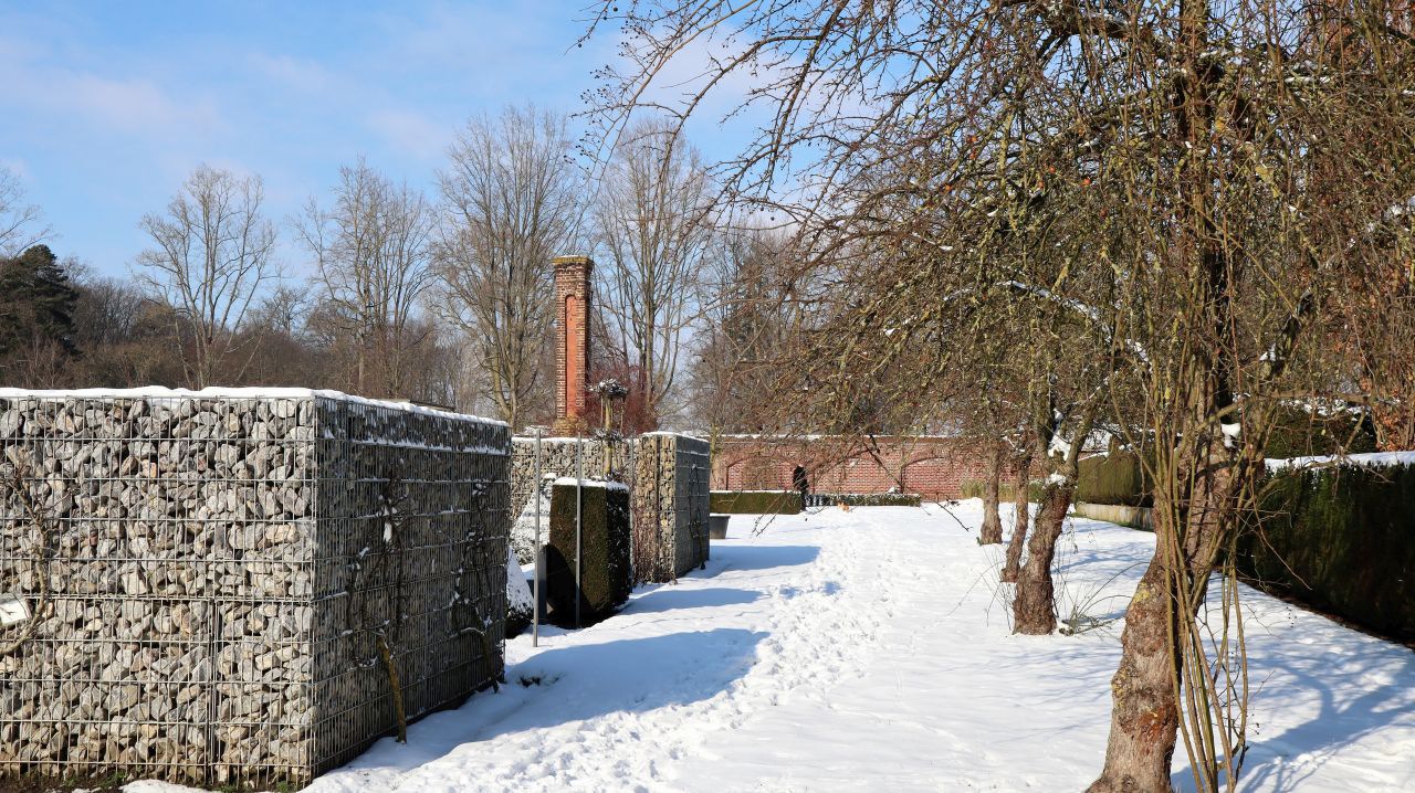 Heute möchte ich euch mitnehmen auf einem virtuellen winterlichen Spaziergang durch den Park der Stiftung Schloss Dyck bei Jüchen. Ein Wintermärchen bei strahlend blauem Himmel. Leider konnten wir die Innenbereiche auf Grund von Corona nicht besichtigen. Trotzdem hat sich der Eintritt gelohnt. (Im Winter 8,- € Erwachsene und Kinder bis 14 Jahre 1,-€. Im Eingangsbereich befindet sich ein Laden, wo man frisches lokales Obst kaufen kann. Gegenüber befindet sich der Museumsshop und etwas weiter in einem separaten Gebäude der Eingangsbereich mit Kasse, Toiletten und Cafeteria.